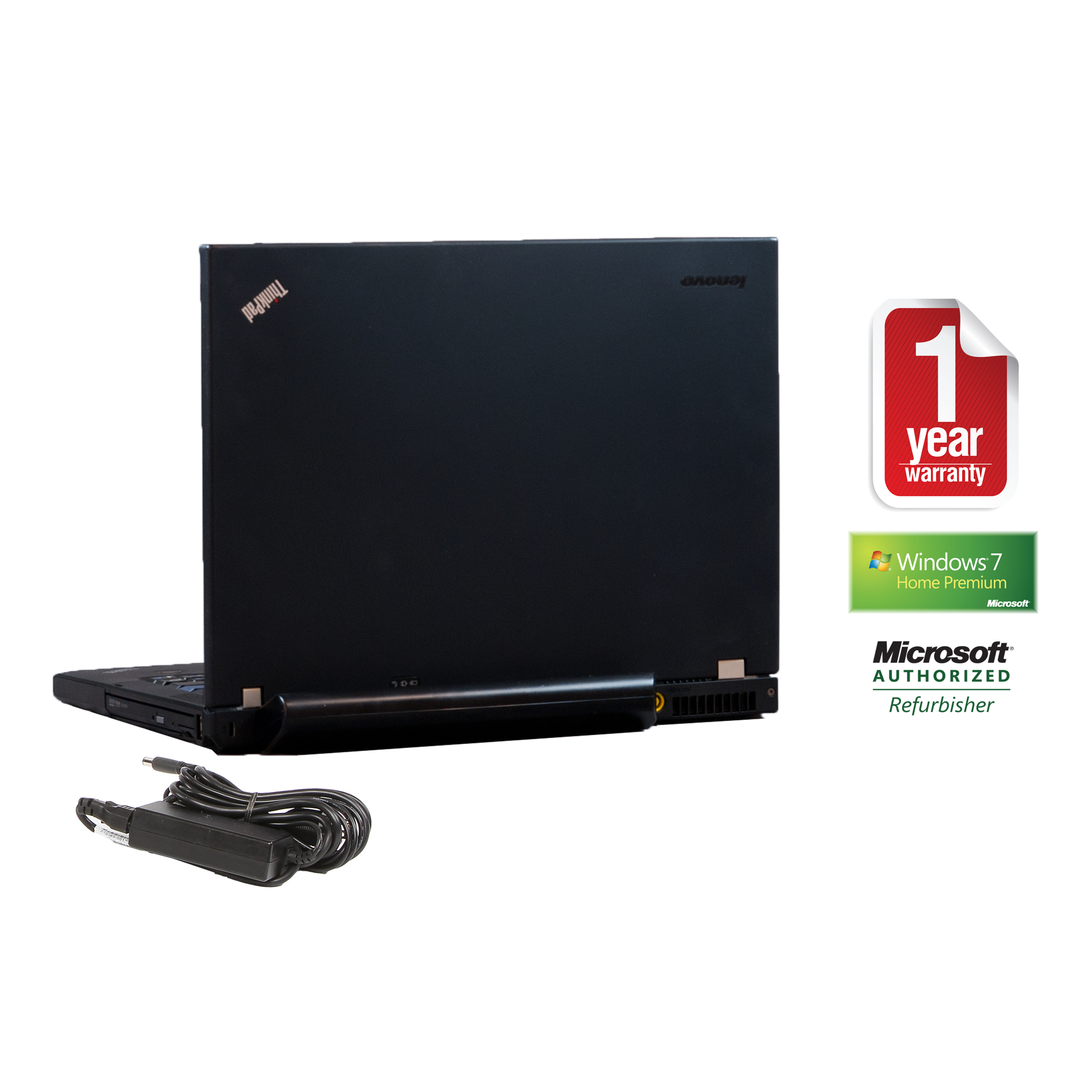 The ThinkPad T notebook has a 14.1" screen that lowers power consumption and offers bright colors. The notebooks come equipped with a range of technology that include DDR3 memory modules, DisplayPort technology and a Touchpad for improved ergonomics. Operating system: Microsoft Windows 7 Professional (64-Bit) Display: 14.1" WXGA LCD Processor: 2.4GHz Intel Core 2 Duo Cache: 3MB L2 Memory: 4GB DDR3 PC2-8500 1066MHz Hard drive: 160GB 5400RPM Optical drive: DVD±RW Graphics: Integrated Intel GMA 4500 MHD Audio: Integrated Audio Networking: Wi-Fi 802.11b/g/n Wireless Networking, Integrated Wireless LAN Ports: 3 x USB, 1 x FireWire (IEEE 1394a), 1 x VGA, 1 x 3.5mm audio line-in, 1 x 3.5mm audio line-out, 1 x Ethernet (RJ-45) Model: ThinkPad T400 Battery: 56Wh 6-cell (@ 6.5hr) Included items: Lenovo T400 Laptop, AC Adapter, Power Cord Dimensions: 9.4" x 13.2" x 2" Weight: 8.65 lbs This high-quality item has been factory refurbished. Please click on the icon above for more information on quality factory-reconditioned merchandise.